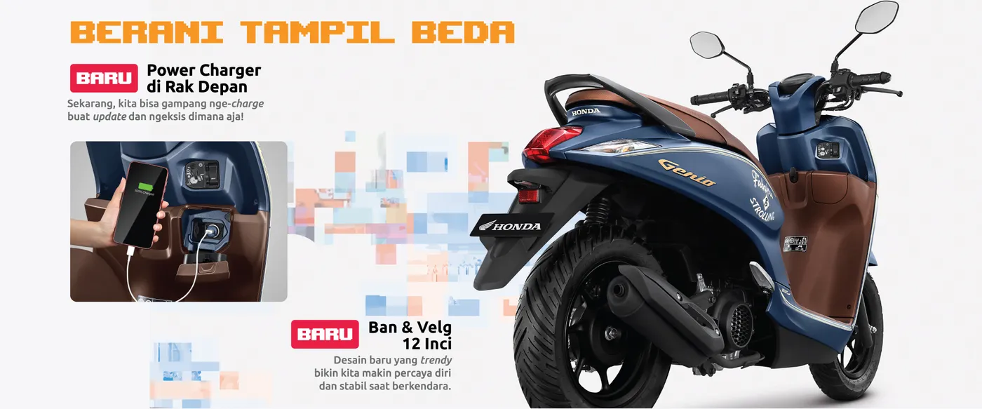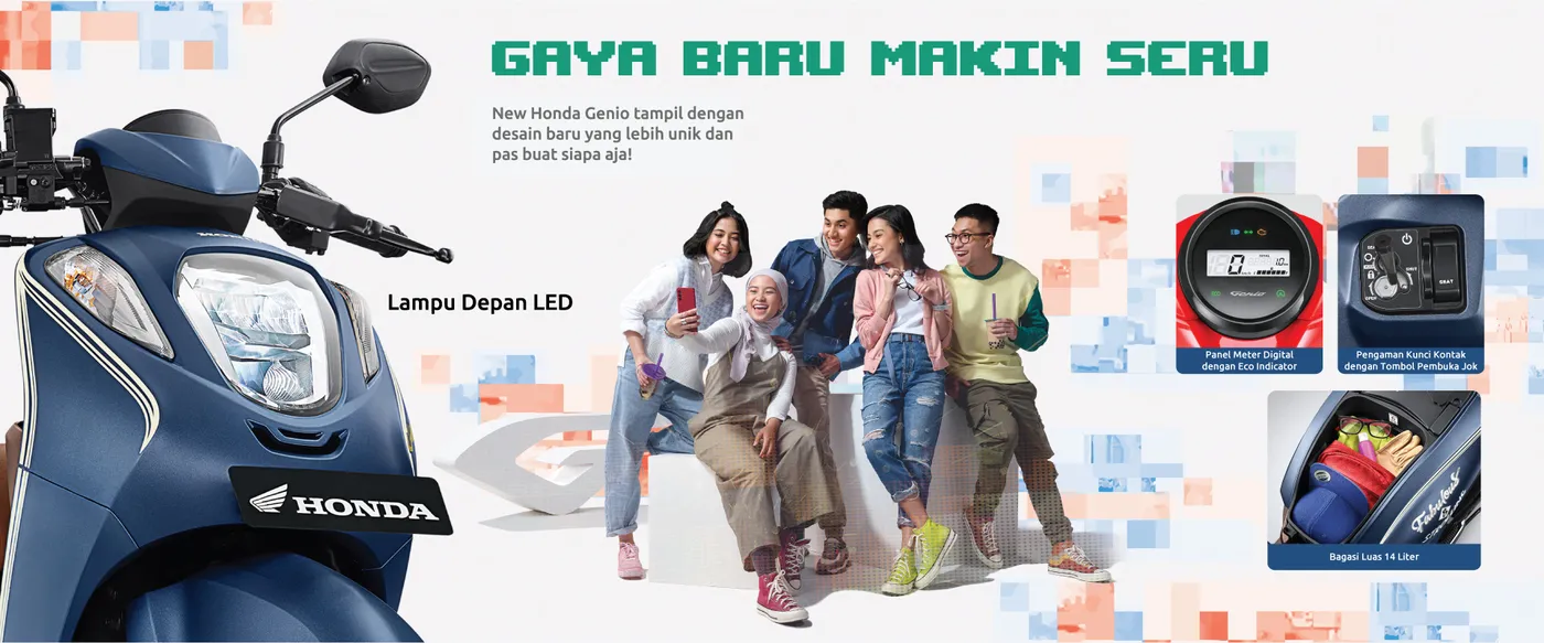 - Digital Panelmeter with Eco Indicator, Lebih informatif dan akurat dengan speedmeter, odometer,fuel meter, eco indicator dan logo genio yang menyala.